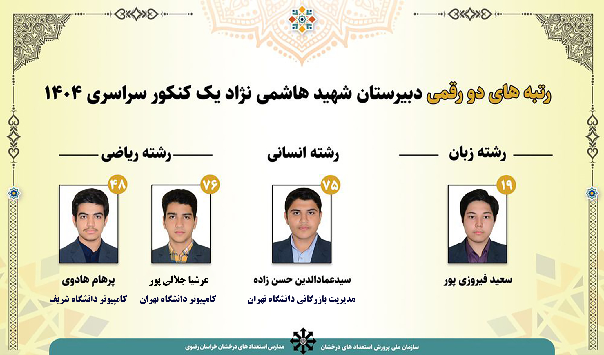 ادامه مطلبپیام مدیر کل به دانش اموزان مدال آور دبیرستان شهید هاشمی نژاد یک