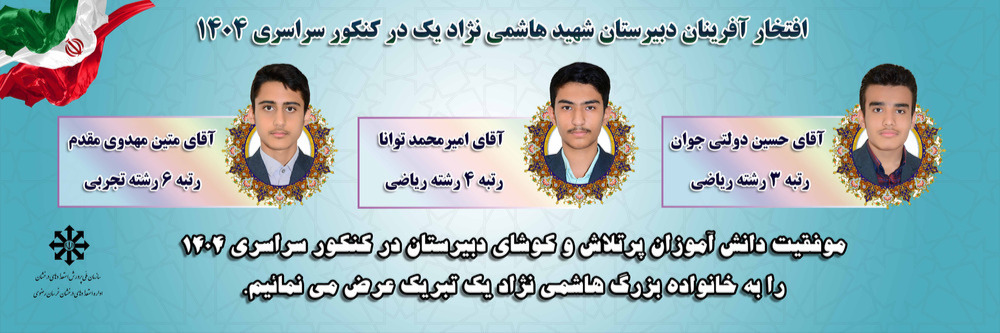 ادامه مطلبپیام مدیر کل به دانش اموزان مدال آور دبیرستان شهید هاشمی نژاد یک